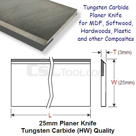 HW-PB25-300 One Piece 25mm Wide Tungsten Carbide (HW) Planer Knife 300mm Long