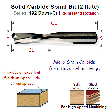 192.001.11 3.18mm Right Hand Downcut Solid Carbide Spiral (2 Flute) 192.001.11