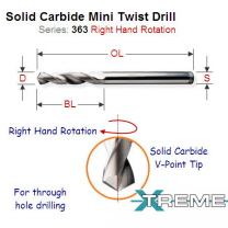 363.030.11 3mm Right Hand Solid Carbide Mini V-Point Twist Drill 363.030.11