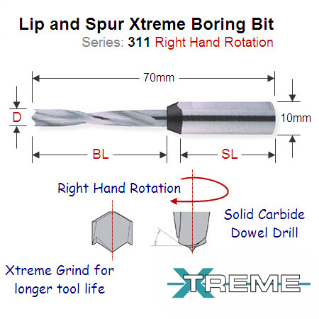 311.030.21 Xtreme Quality 3mm Right Hand Lip and Spur Boring Bit 311.030.21